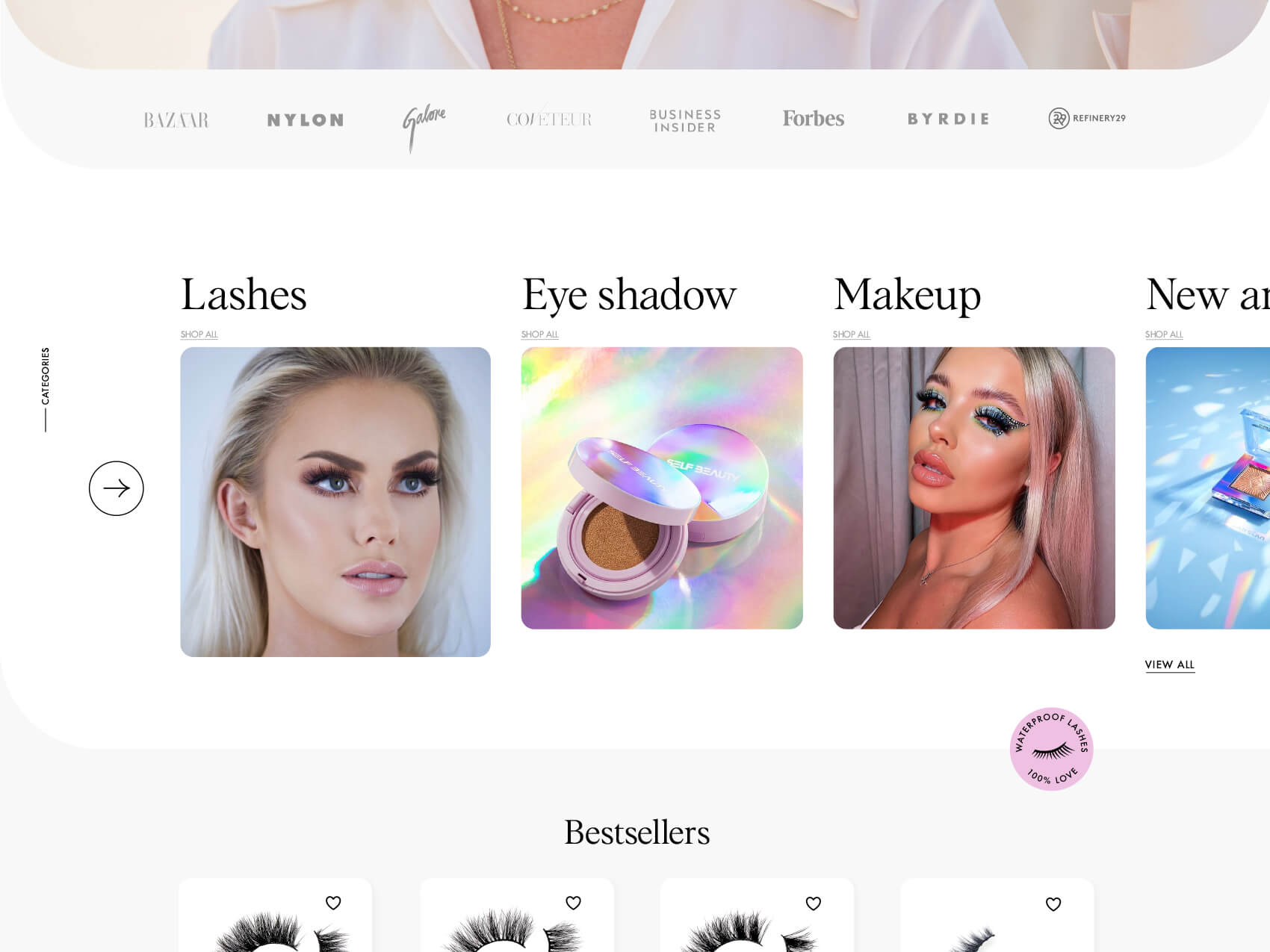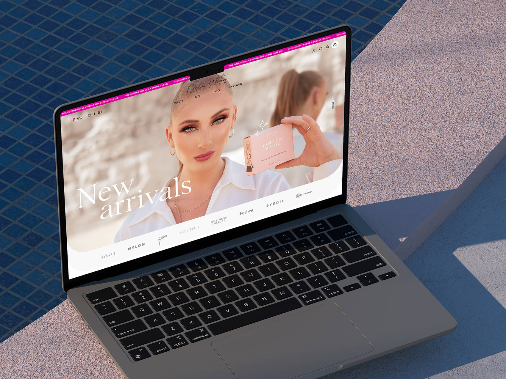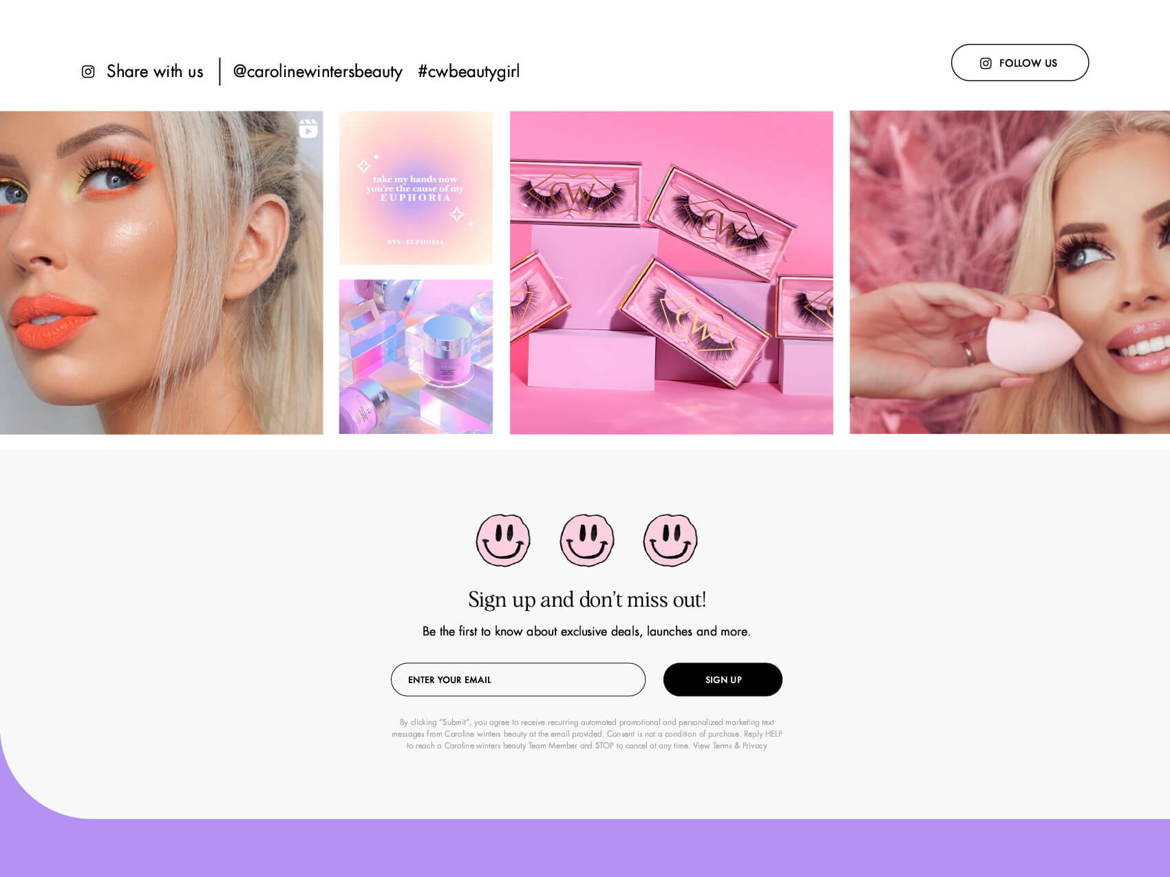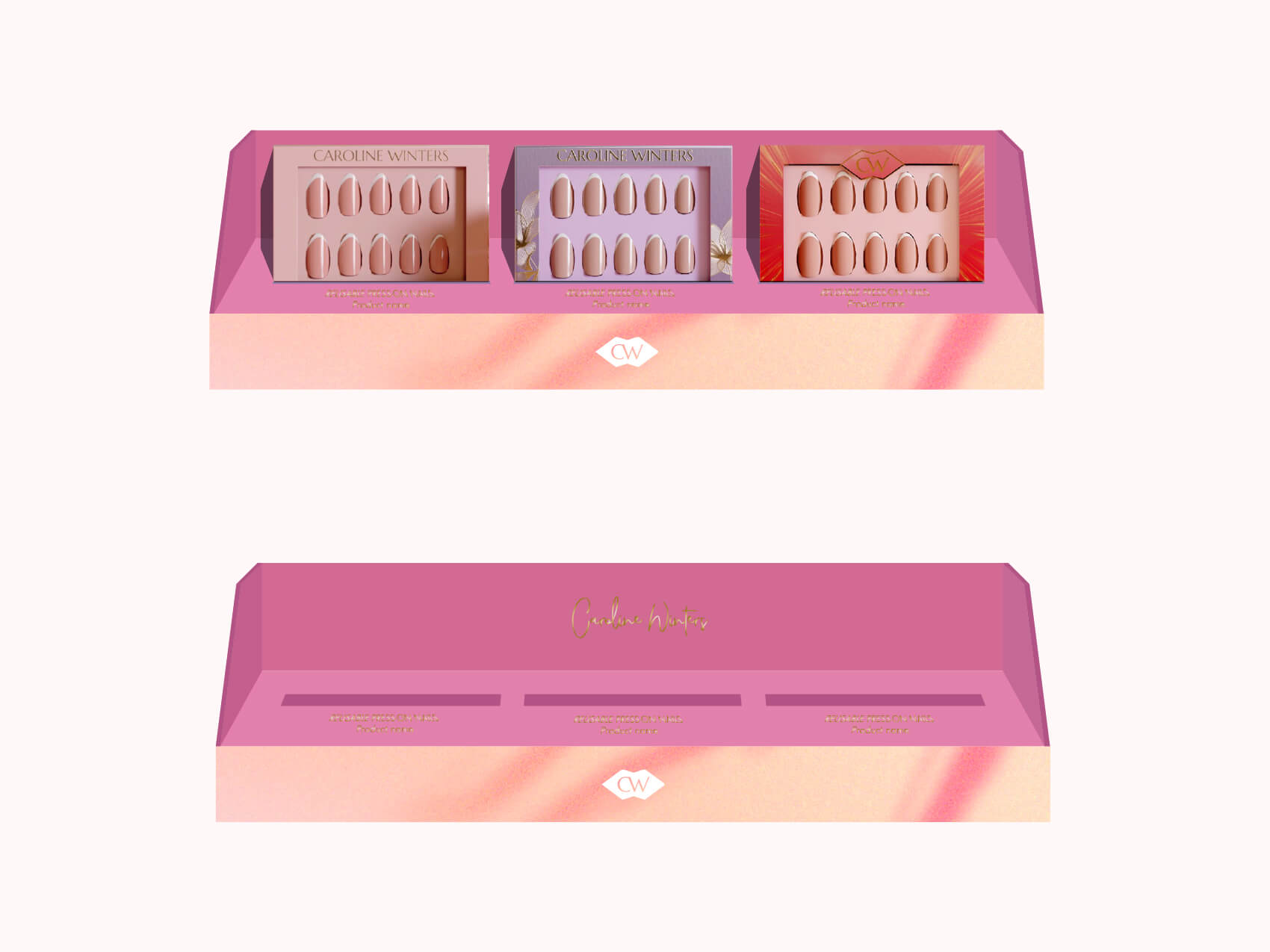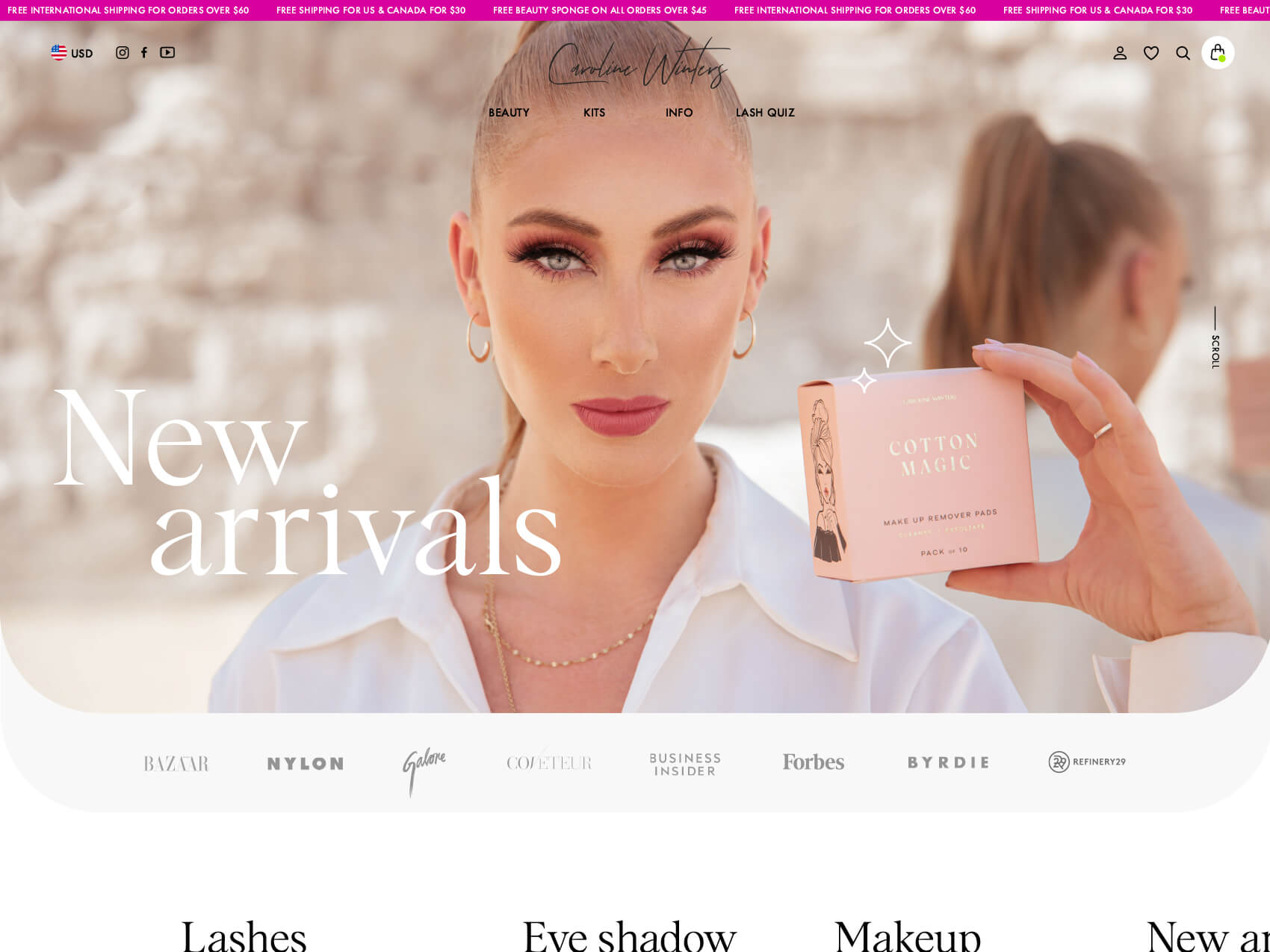 Emballage- og webdesign for Caroline Winters Beauty, som sælger beauty-produkter, primært makeup og tilbehør. Webdesignet og emballagen skulle afspejle Carolines ‘girly’ univers og samtidig have en ‘wow’-faktor og en sammenhæng til de resterende produkter.